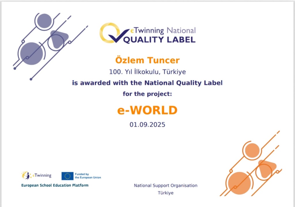 4/A Sınıfı öğrencileri geçen sene yürüttükleri eTwinning Projesi ile Ulusal Kalite Etiketi ile ödüllendirilmiştir. Tebrik ediyor, başarılarının devamını diliyoruz.
